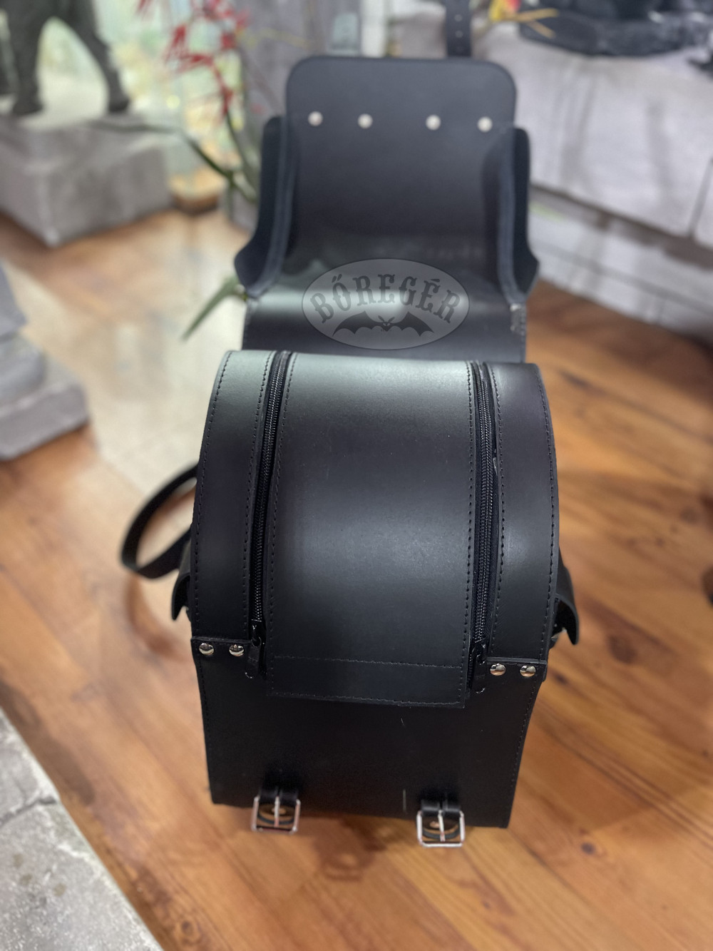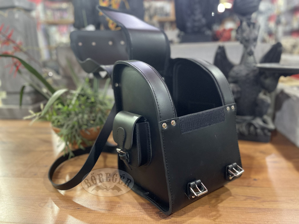 Valódi bőr oldaltáska hátizsák funkcióval fekete 37 cm – duplafedeles, csatos és cipzáras (LG08)