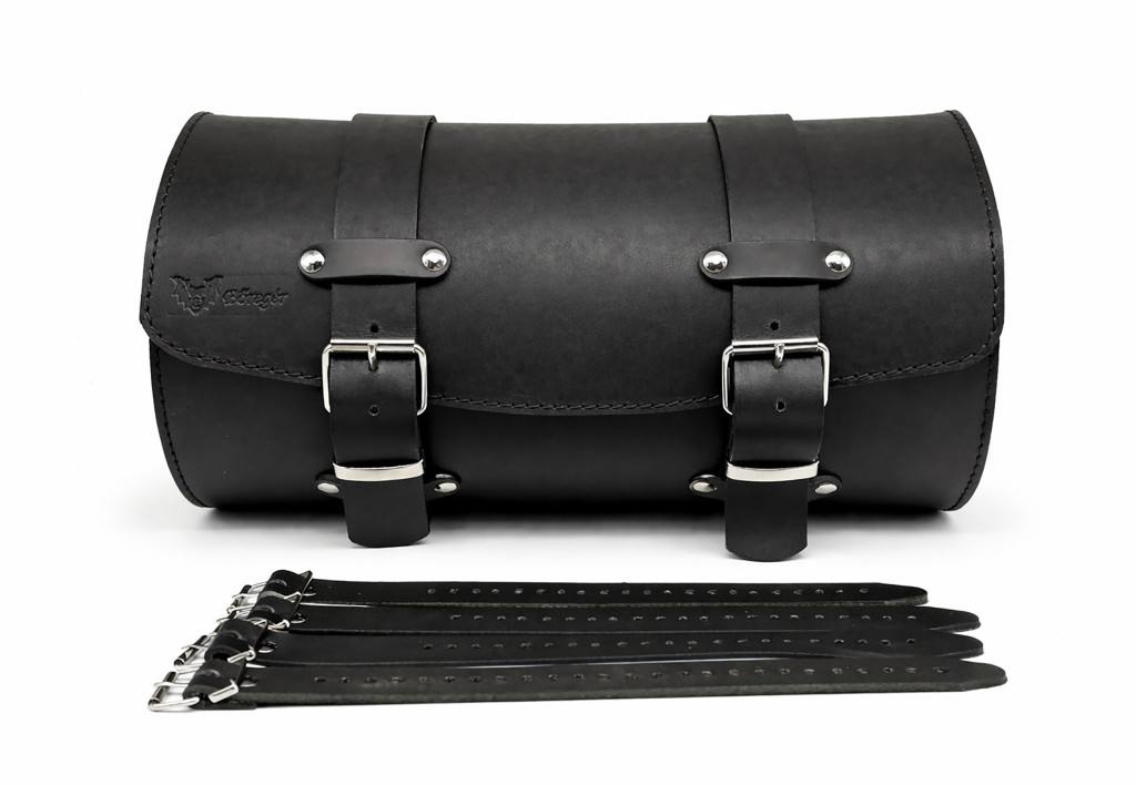 A LG26 hátsó hengertáska kiváló minőségű, 4 mm vastag marhabőrből készül kívül és belül is, amely rendkívüli tartósságot és hosszú élettartamot biztosít. A táska klasszikus motoros stílusú kialakítású, elején két erős fém csattal záródik, így a tartalma biztonságban marad menet közben is.