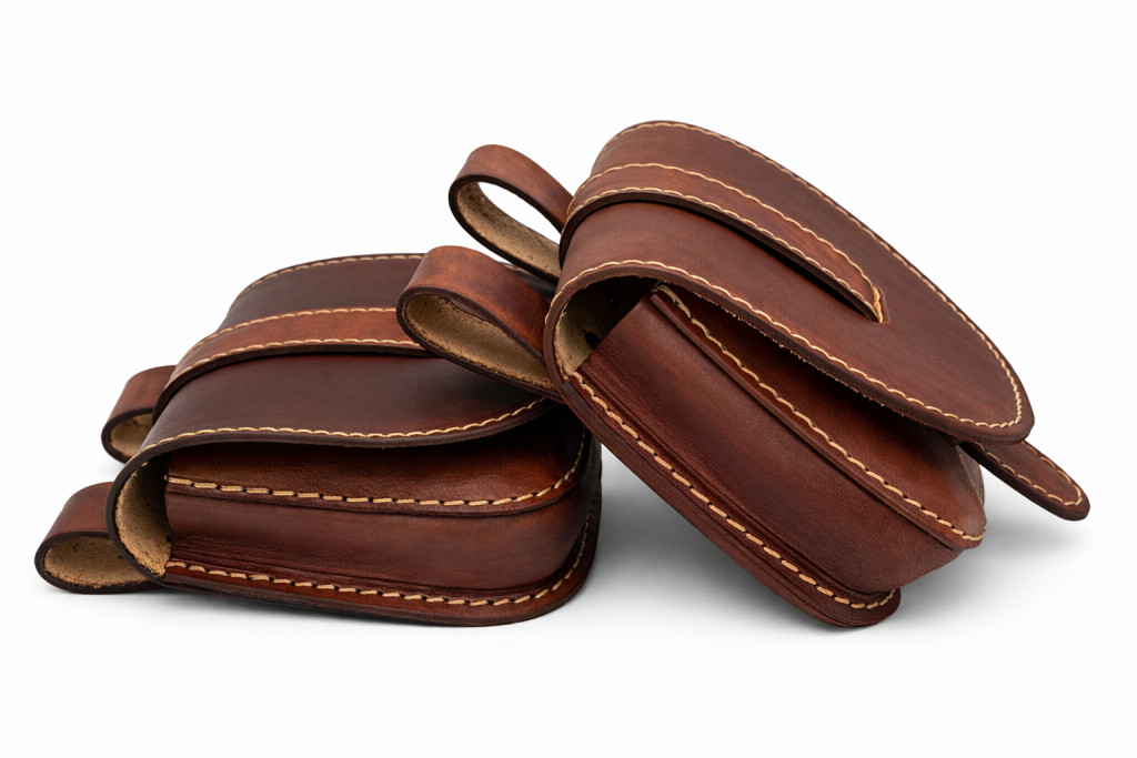 Valódi marhabőrből, kézzel készült, így minden darab egyedi megjelenésű. A természetes bőrfelület idővel tovább szépül, patinásodik.